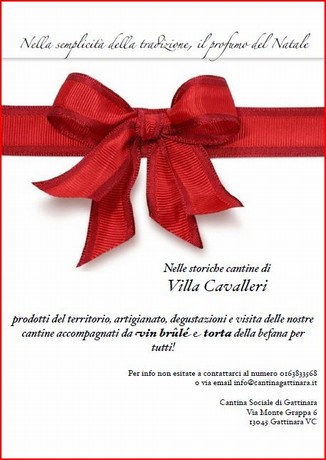 Il profumo del Natale invade le storiche Cantine di Villa Cavalleri.............eccellenze del territorio, artigianato, degustazioni e visita delle cantine.... il tutto accompagnato da Vin Brulè e torta della Befana che la Cooperativa è lieta offrire a tutti i visitatori......